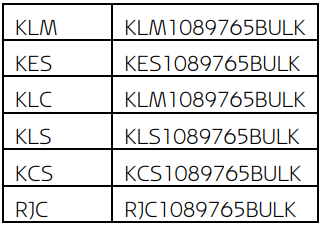 and followed by 'BULK' (e.g. KLM12345BULK).